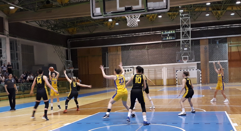 Košarkašice Medveščaka su u prvoj finalnoj utakmici doigravanja slavile protiv Splita 74:45 i povele 1-0 u seriji na tri dobivene utakkmice. Iva Todorić je tricom otvorila susret za početnih 7:0. Gošće su zakratko zadržale priključak (7:7), a tada su ostale bez poena gotovo šest minuta što je Medveščak iskoristio i serijom 18:0 stigao do prednosti 25:7. Već tada bilo je jasno da će se Splićanke teško vratiti u susret koji je bio jednosmjerna utakmica u nastavku. Početkom druge četvrtine Matea Tadić s pet uzastopnih poena odvodi Medveščak na velikih +23 (34:11), a na poluvremenu je bilo okruglih 30 razlike (50:20) uz 11 poena Ane Vojtulek i 10 Tadić.